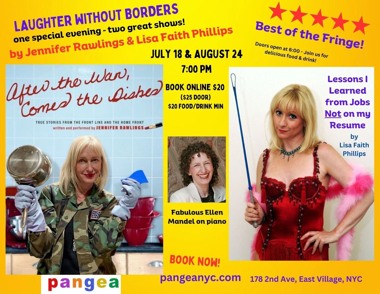 “Wildly entertaining” one special evening – two great shows by the “incredible storytellers” Jennifer Rawlings and Lisa Faith Phillips with Ellen Mandel on piano.