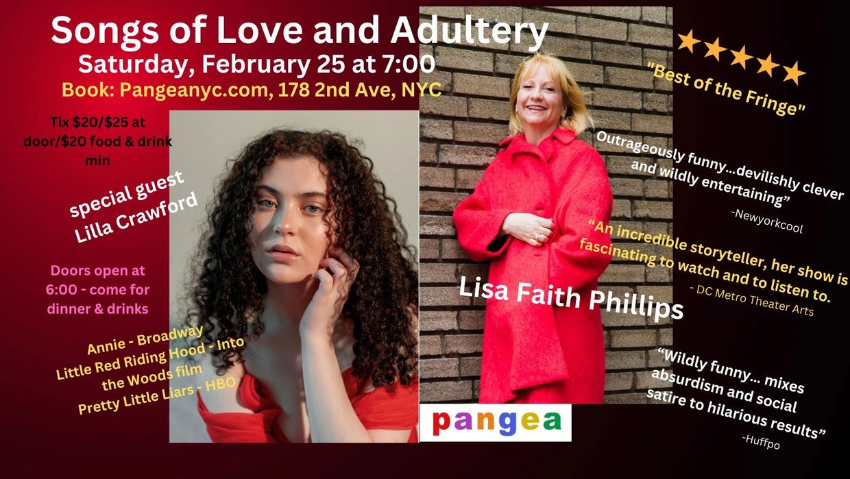 Please join us at Pangea, the charming East Village cabaret, for laughter, song and revelations!